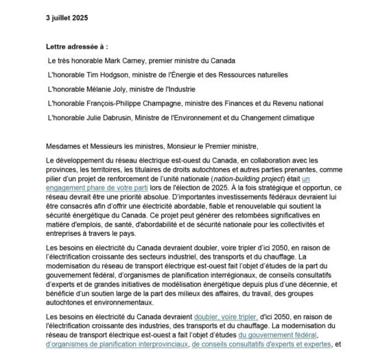 Solutions climatiques 3 juillet 2025 Plus de 100 organisations appellent à construire un réseau électrique canadien d’est en ouest misant sur les énergies renouvelables et qui respecte les droits des peuples autochtones. Lire la suite