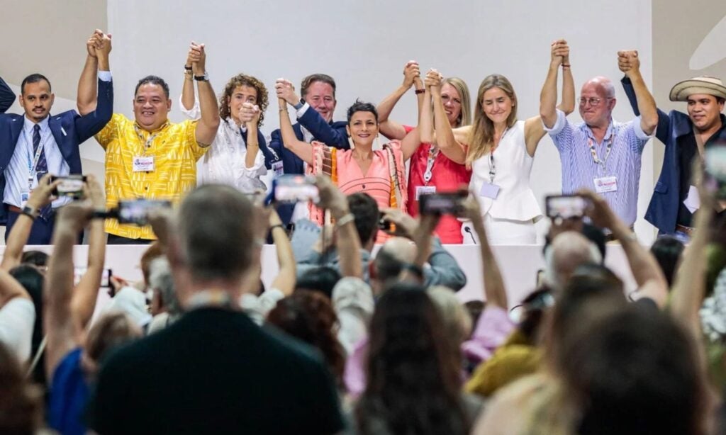 Annonce de la première conférence internationale sur l’abandon progressif des combustibles fossiles le 21 novembre 2025 lors de la COP30 à Belém, au Brésil. (Photo : Transition Away Conference)