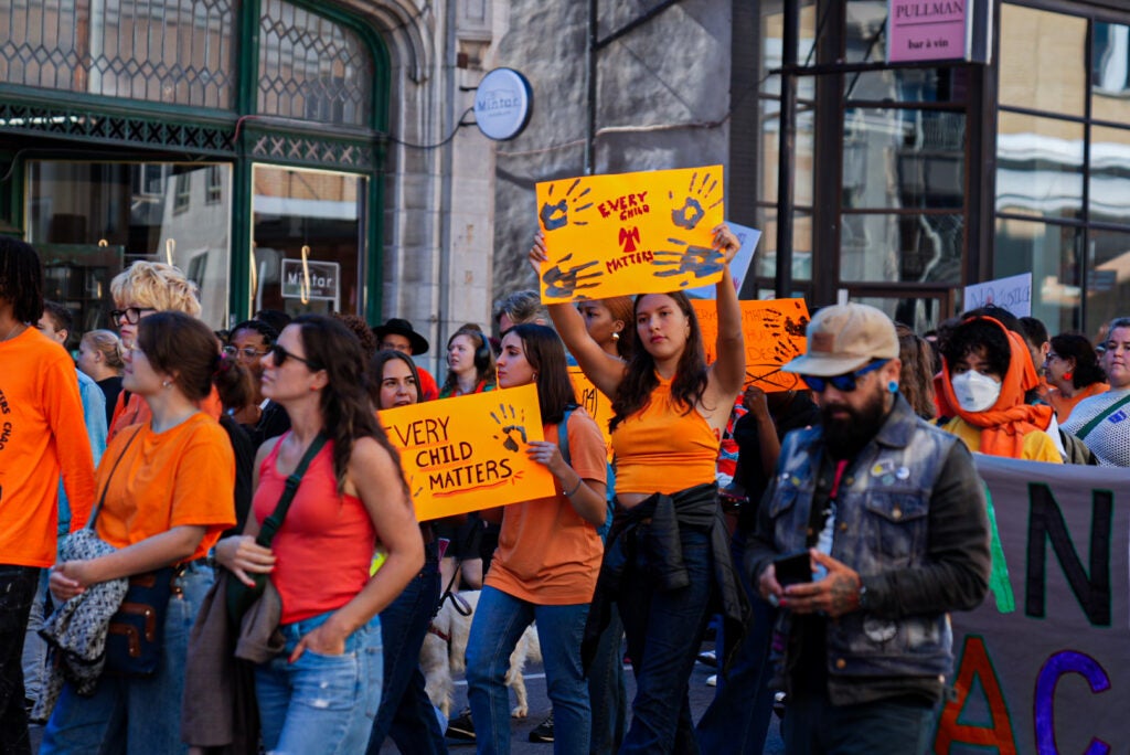 Photo prise lors de la marche Chaque enfant compte organisée par le Foyer pour femmes autochtones de Montréal en 2024. (Photo : Laurence Bolduc / Fondation David Suzuki)