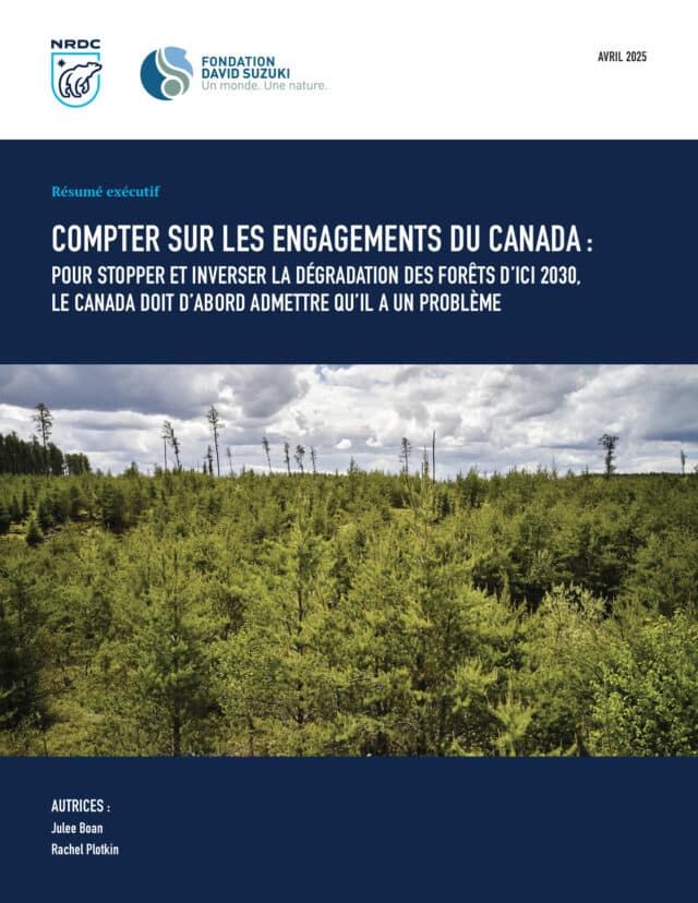 Un nouveau rapport du National Resources Defense Council et de la Fondation David Suzuki révèle que, malgré les affirmations du Canada que ses lois protègent l’intégrité écologique des forêts, la dégradation des forêts s’est produite partout au pays sans que le gouvernement reconnaisse, surveille et propose suffisamment de recours.